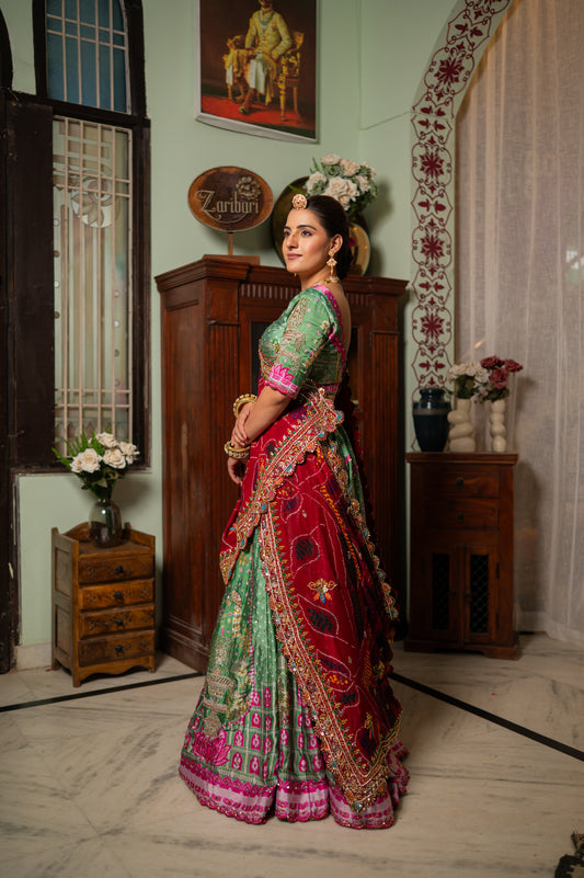 Bridal Dupatta - Maroon Bandhej Zardozi Peacock Gota Patti | Chunari