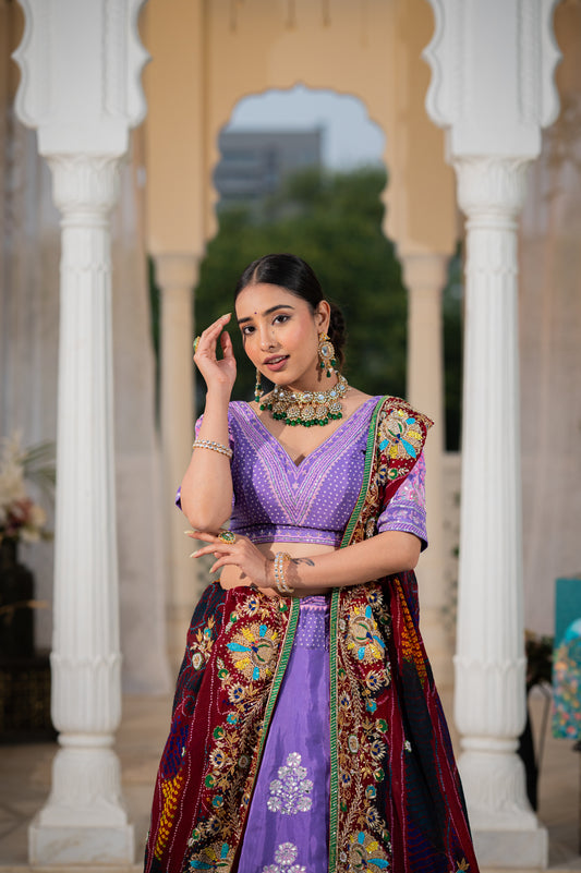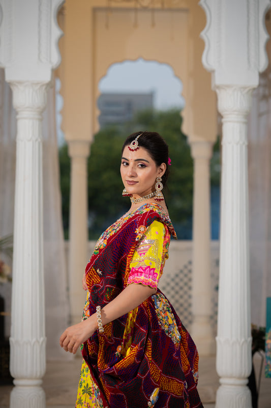 Bridal Dupatta - Maroon Ojariya Bandhej Marodi Sequins | Wedding Chunari