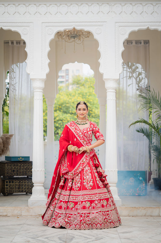 Red Silk Bridal Lehenga with Aari Sequins Work